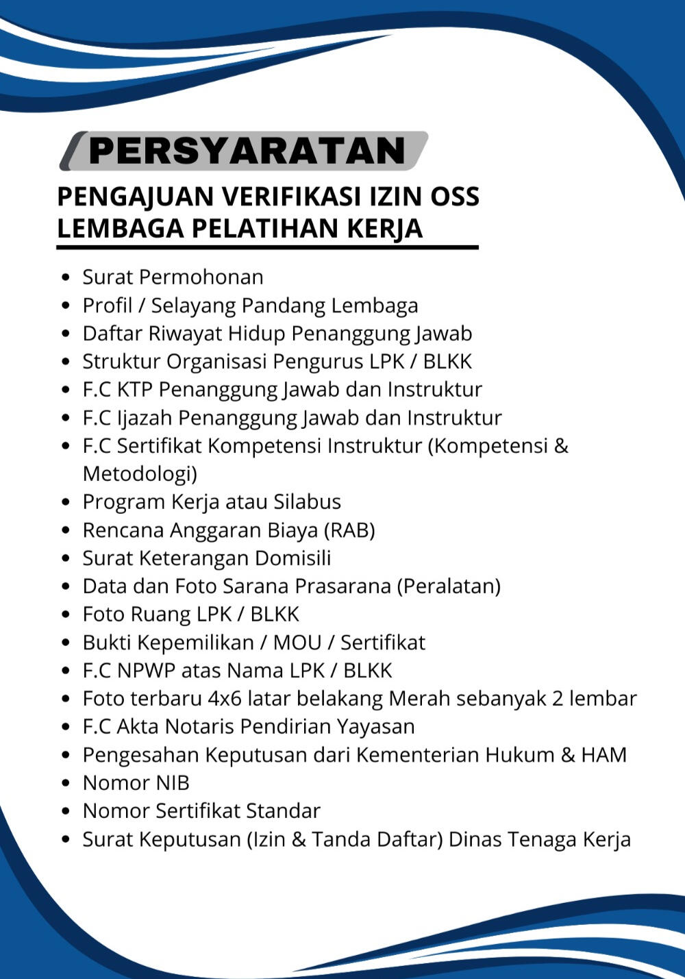 PERSYARATAN SETIAP PELAYANAN DI BIDANG PENTA